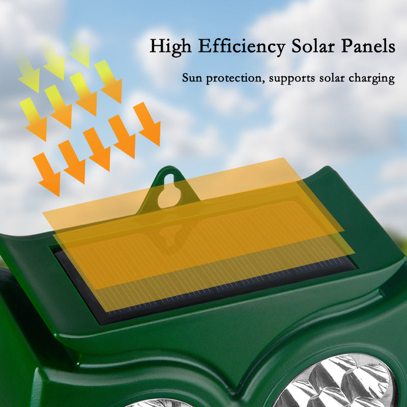 Triple-Action Deterrence: Combines ultrasonic sound, LED flashing lights, and infrared detection for maximum effectiveness.